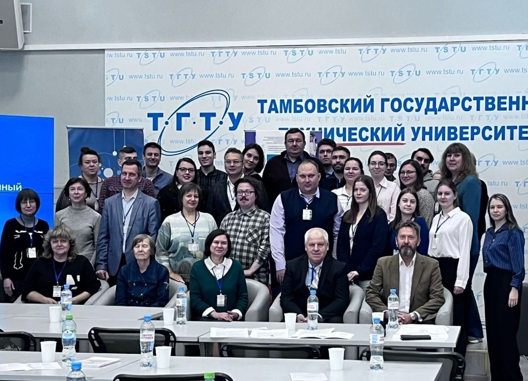 Conference participants taking part in the Covid-19 constraints in person. In the foreground A.A. Popova, Ph.D. in chemistry, head of department at Maikop University, L.G. Knyazeva, Ph, Professor of TSTU, 2nd row - E. D. Tanygina, Doctor of Chemistry, Professor of Derzhavin State University, O. A. Abonosimov, Doctor of Technical Sciences, Professor of TSTU.