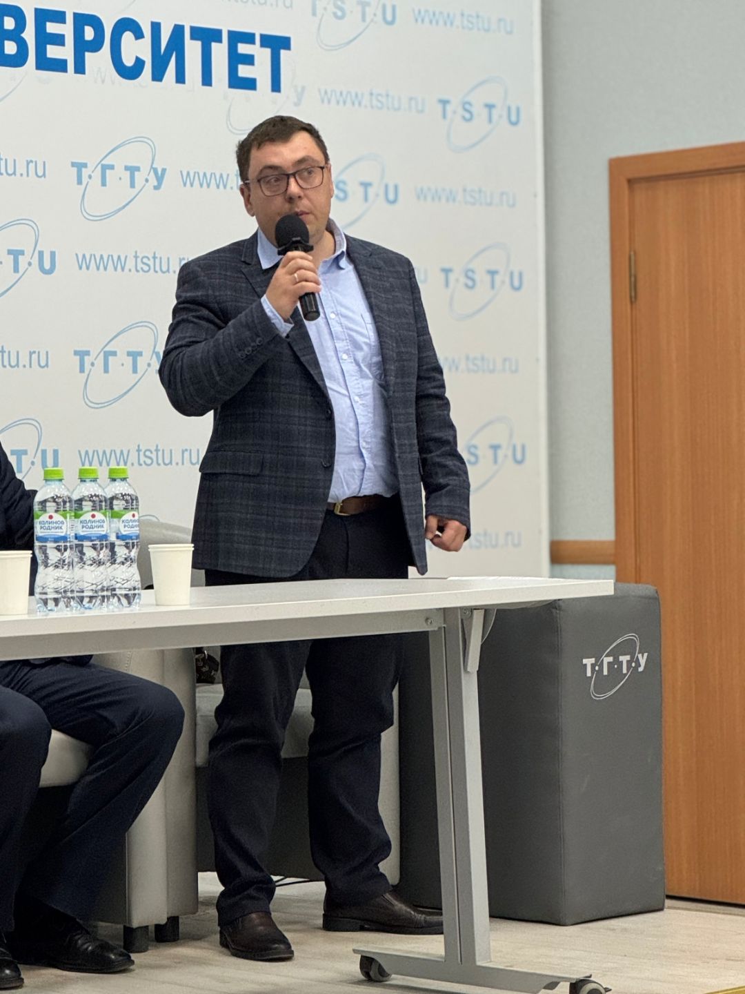 Conference participants during a coffee break (from left to right): Dr. D.N. Konovalov, Dr. D.A. Rodionov, Dr. I.V. Khorokhorina, Dr. K.V. Shestakov (all from TSTU).